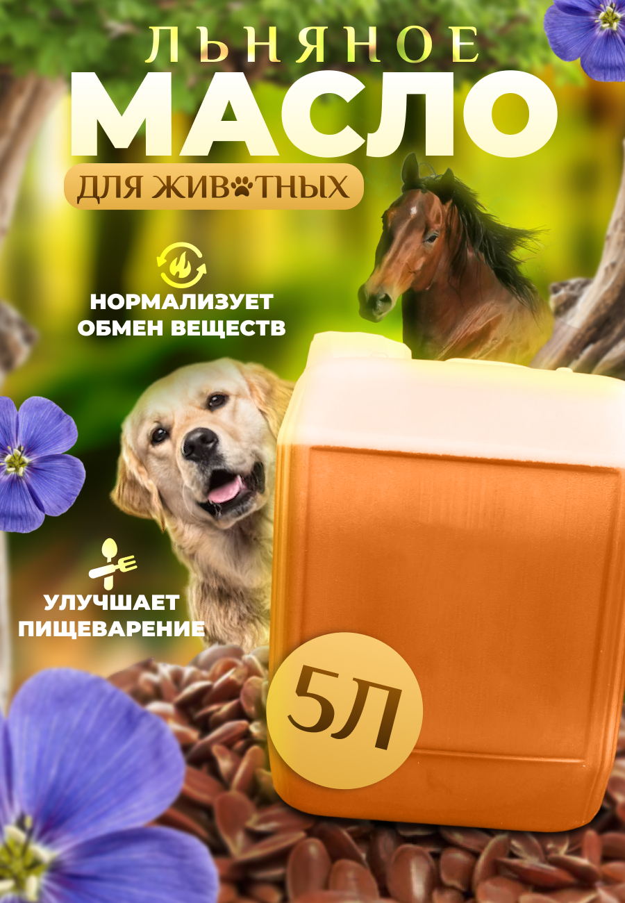 Масло льняное для животных, 5л (нерафинированное)