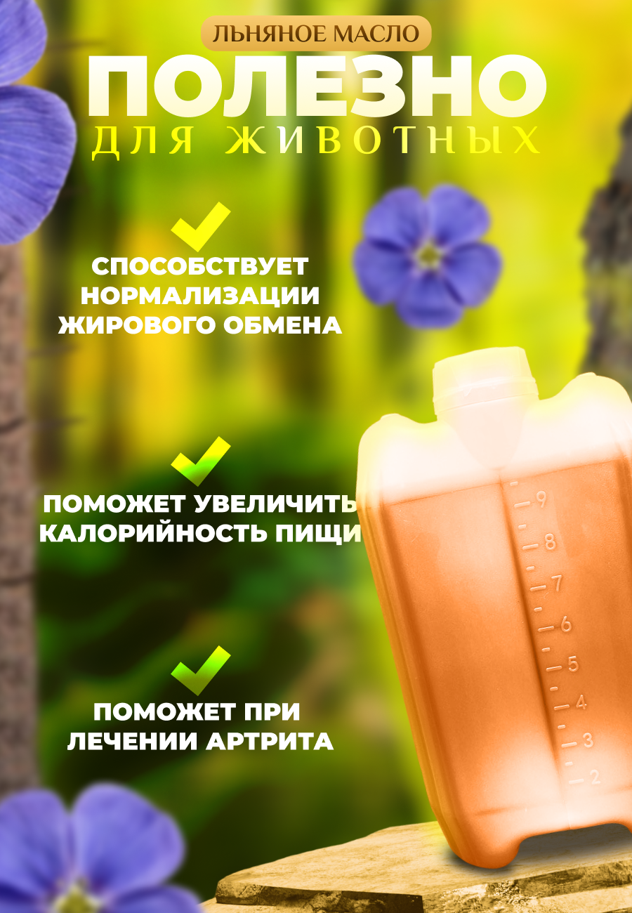 Натуральное нерафинированное льняное масло для лошадей. Улучшает состояние шерсти и копыт, поддерживает ЖКТ, сердце и иммунитет. Облегчает линьку.
